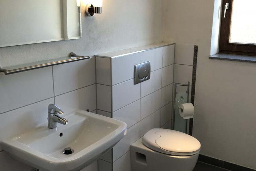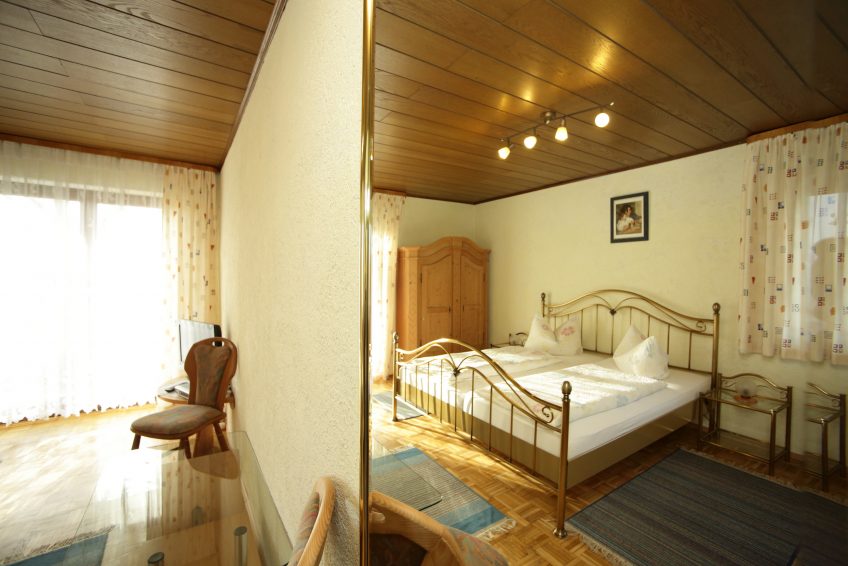 Unser Dreibettzimmer hat neben einem Doppelbett ein Einzelbett. Darüber hinaus verfügt es über eine Terrasse und ein Badezimmer mit ebenerdiger Dusche